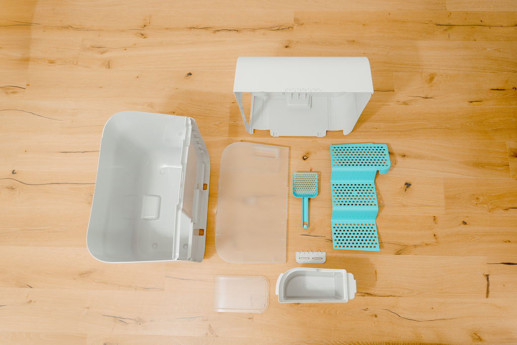 Die Katzentoilette wird ausschließlich in Deutschland hergestellt und besteht aus über 80% recycelten Kunststoff. Die Wanne kann einzeln ausgetauscht werden.